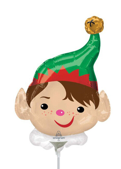 Cute Christmas Elf Inflated Mini Balloon on Stick COMES INFLATED