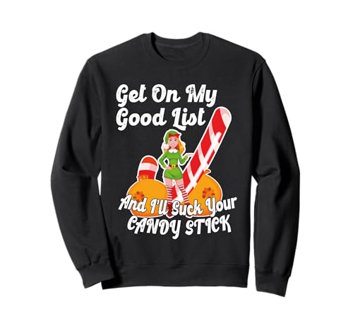 Sexy Elf Good List Suck Candy Stick Rude Naughty Christmas Sweatshirt