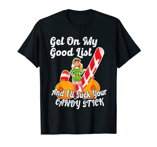 Sexy Elf Good List Suck Candy Stick Rude Naughty Christmas T-Shirt
