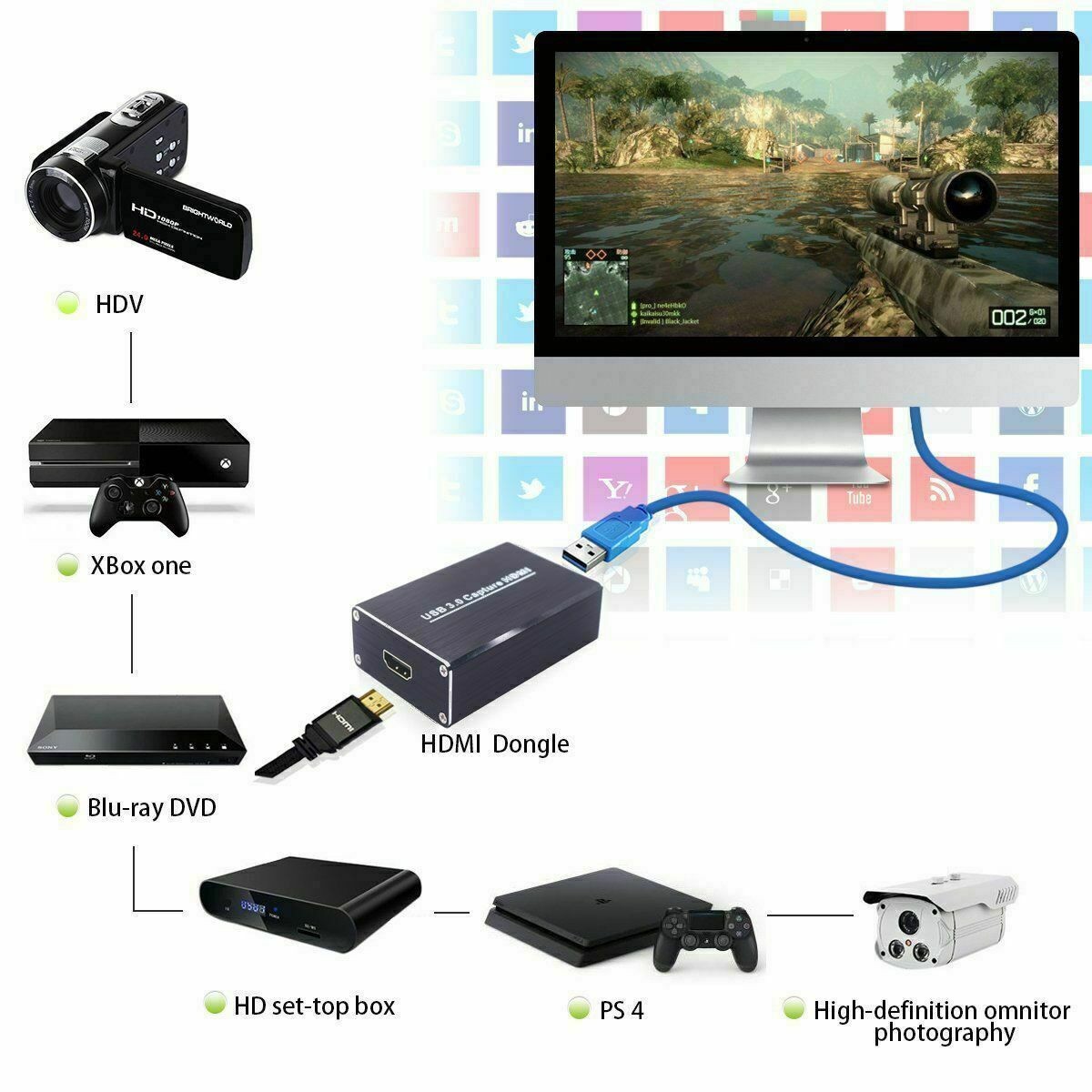 USB 3.0 to HDMI Audio Video Capture Card Adapter Screen Record 1080P Game HD