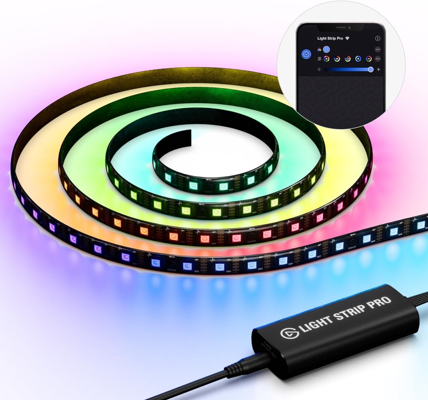 Elgato Light Strip Pro – Individually Addressable RGB LEDs, AI Scenes, Adjustable Speed/Intensity/Direction – App Controlled on Mac, PC, iPhone, Android, Stream Deck