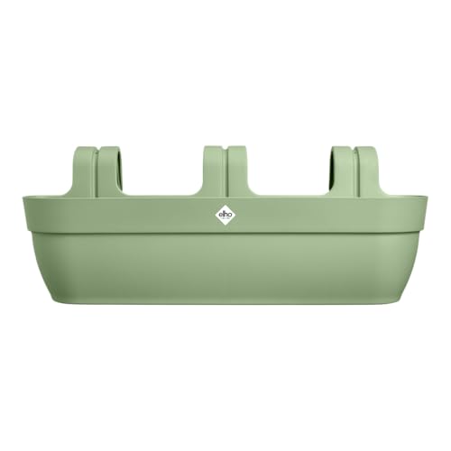 Elho Vibia Balcony Planter 69cm Pistachio Green Plastic Railing Planter with Hooks and Overflow Pipes for Railings up to 6.5cm