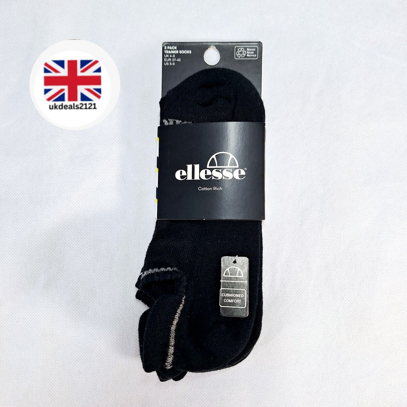 Ellesse Women’s Trainers Socks 3 Pack Size 4-8 Black Cotton Rich Sport NEW