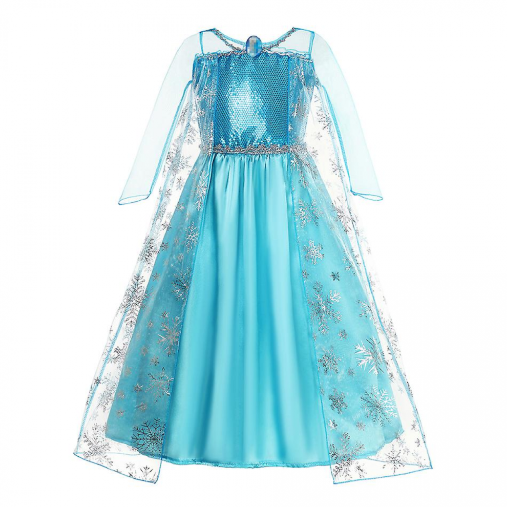 Disney Store Official Queen Elsa Costume for Kids, Frozen, Sparkly Outfit for Fancy Dress, Halloween and Roleplay, Age 5-6