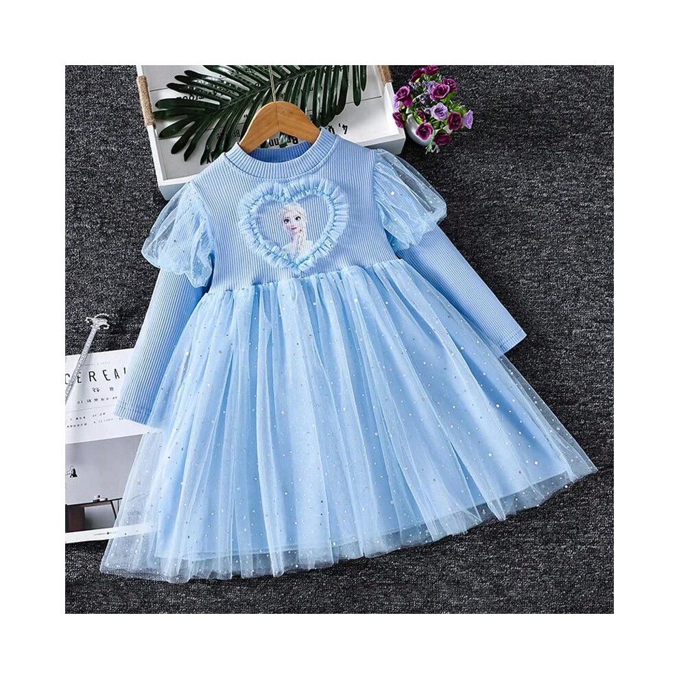 (Photo Color-13, 4T(110)) 2025 New Princess Dress Girls Dress Spring Autumn Kids Dress Long-sleeved For Children's Party Clothes Elsa Frozen Dress 2-9