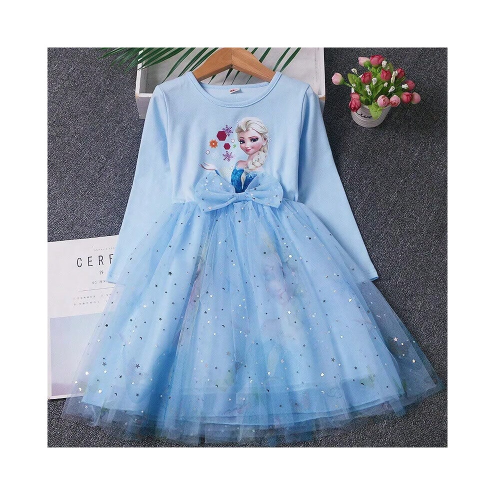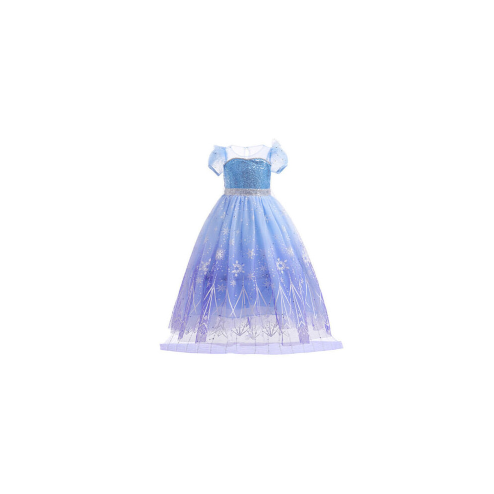 (5-6, Elsa Dress) Girls Kids Frozen Elsa Princess Fancy Dress Up Party Costume Cosplay Outfit Gift