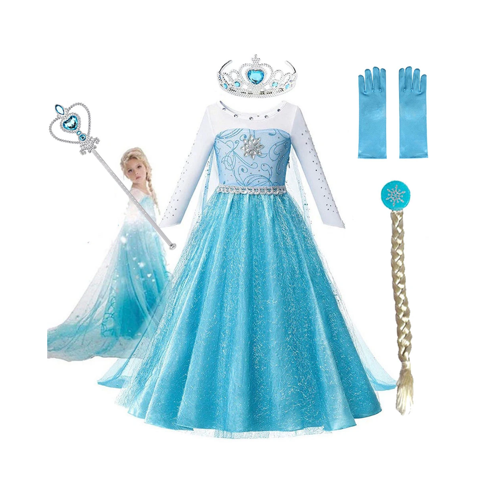 URAQT C-L120QL210121-FBA Elsa Princess Costume Dress Set