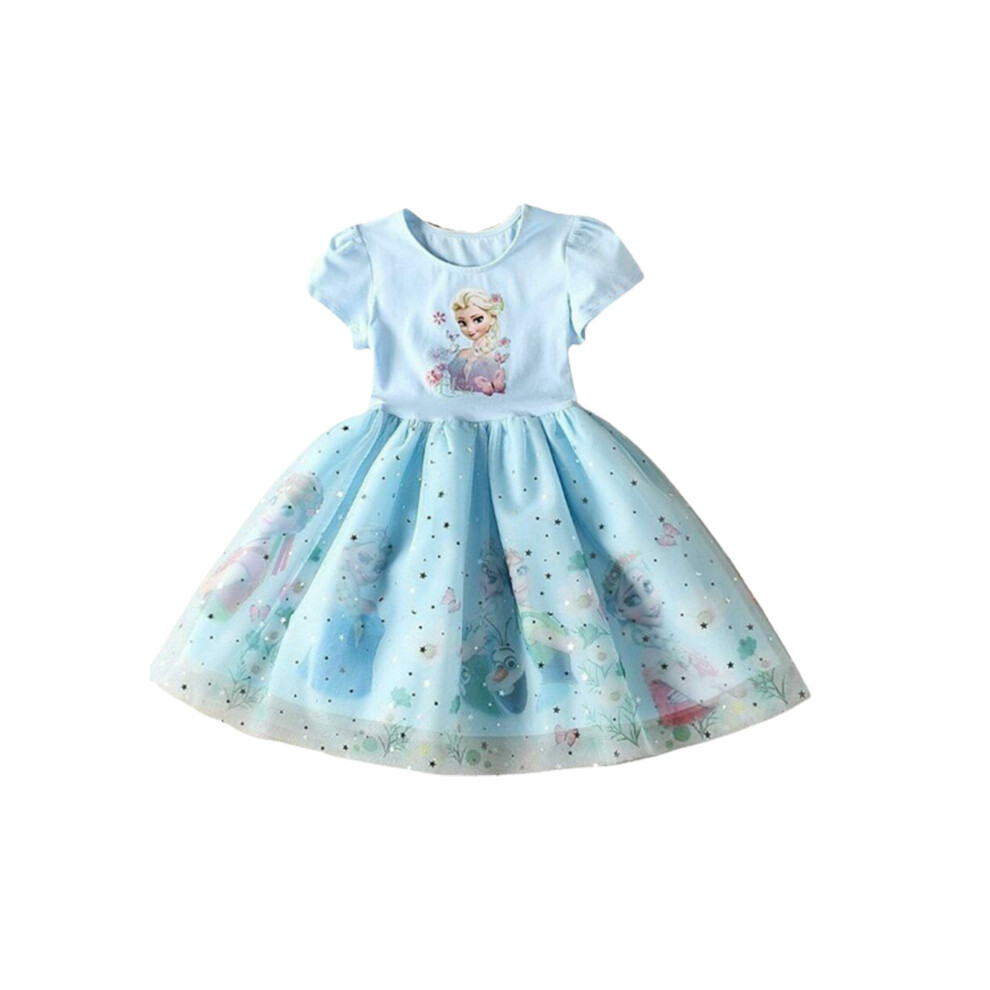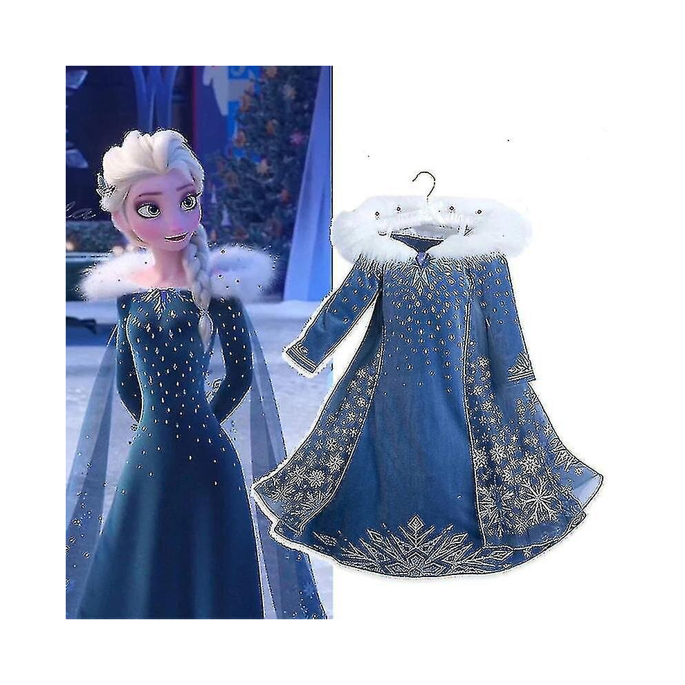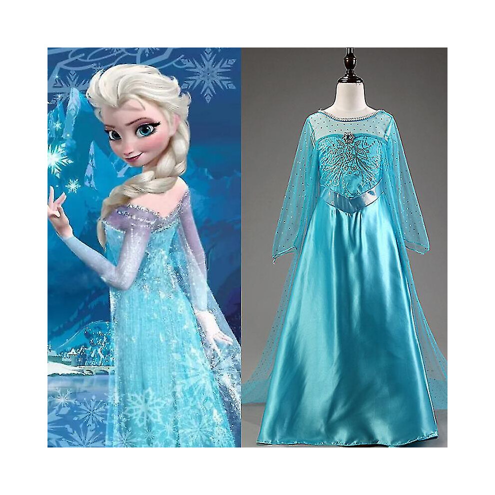 (Blue, 110cm) Frozen Elsa Princess Dress Kids Girls Fancy Dress Up Party Cosplay Costume