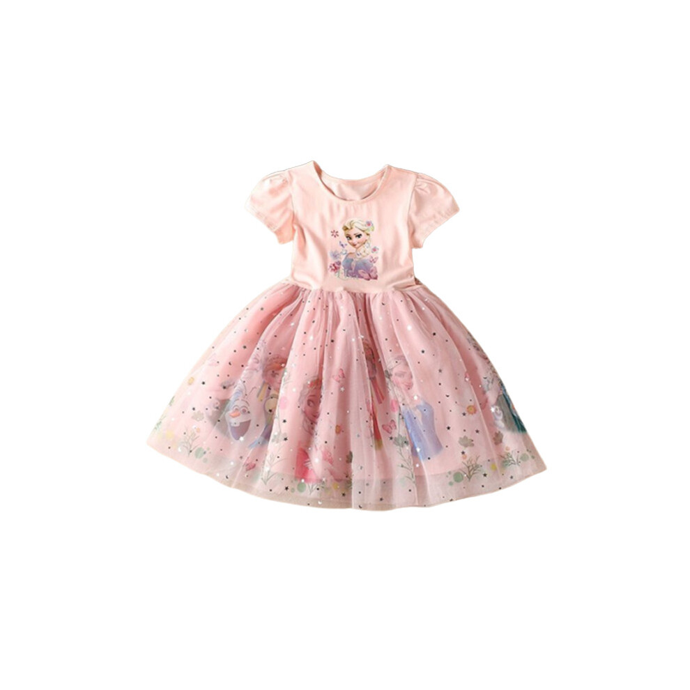 (Pink, 130cm) Frozen Elsa Princess Dress Kids Girls Fancy Dress Up Party Cosplay Costume
