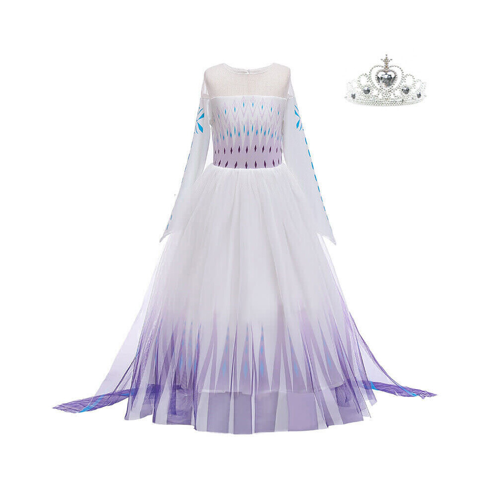 (6-7, Purple) Girls Frozen Elsa Fancy Dress Up Costume Princess Birthday Party Clothing Blue