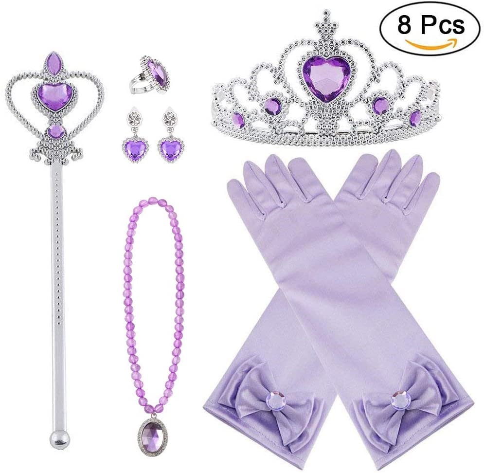 Vicloon Elsa Dress Up Accessories Set, 7 Pcs Princess Dress-up Party Accessories for Girls with Elsa Gloves, Princess Tiara, Earring, Magic Wand, Necklace(Purple)