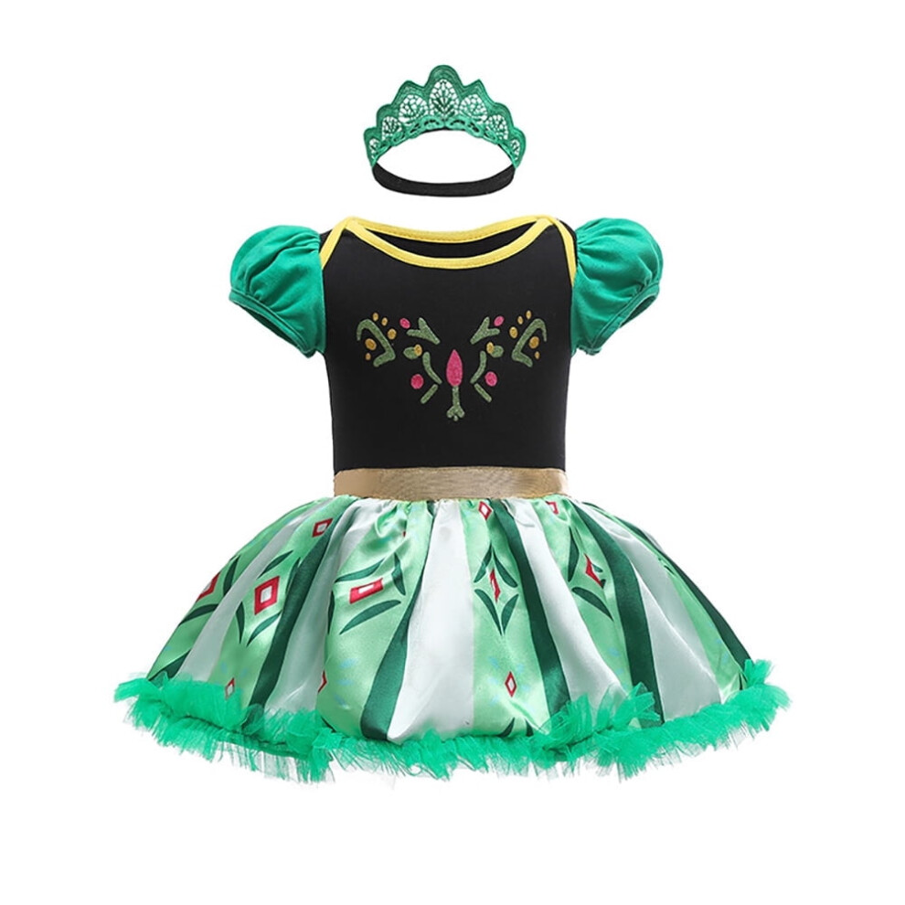 (green+purple, 3-6 Months) Elsa Anna Cinderella Snow White Fancy Dress up Romper + Headband Halloween Christmas Carnival Cosplay Birthday Party