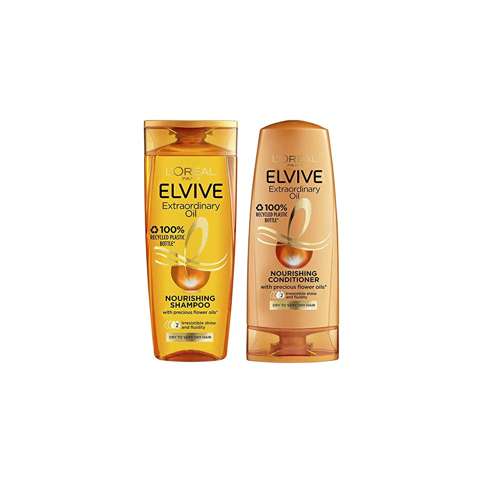 L'Oreal Elvive Extraordinary Oil Nourishing Shampoo & Conditioner Set for Dry to Very Dry Hair, 400ml bottle of each,