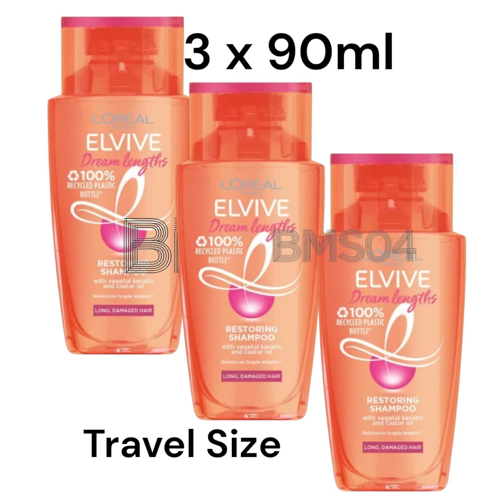 3 x L'Oreal Elvive Dream Lengths Shampoo 90ml Travel Size