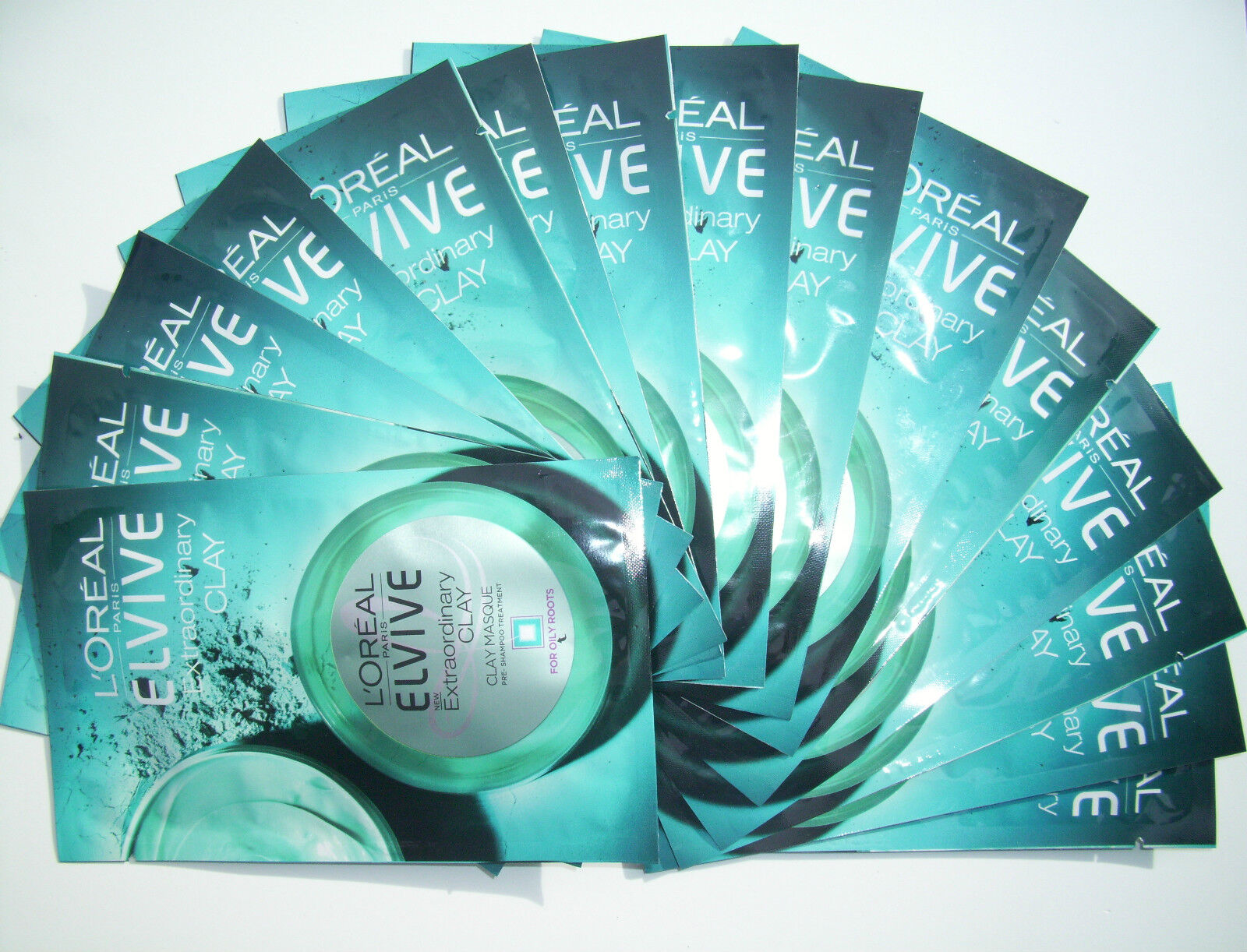 L'OREAL ELVIVE EXTRAORDINARY PRE-SHAMPOO CLAY MASQUE 15 x 14.7ml SACHETS =220ml