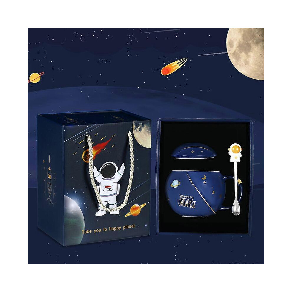 (As show, One size) Cute Astronaut Mugs with Lid, Novelty Ceramic Coffee Mug, Morning Ember Mushroom Milk, Tea Cup Navy Blue 400ml/15oz,2024 Ping