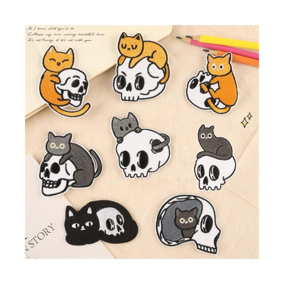 Decals for T-Shirt Clothing 8 Pcs Halloween Embroidery Patch Fabric Stickers Skull Cat Clothes Badge Applique DIY Costume
