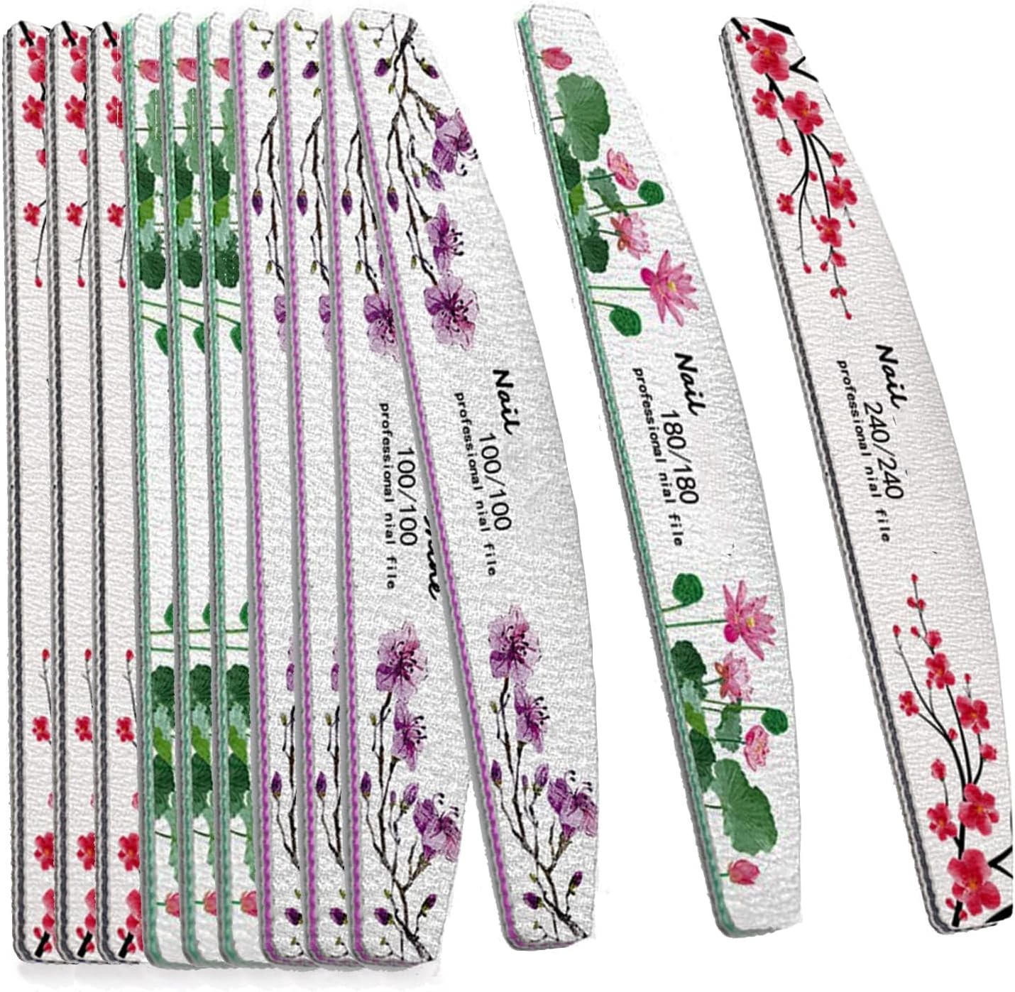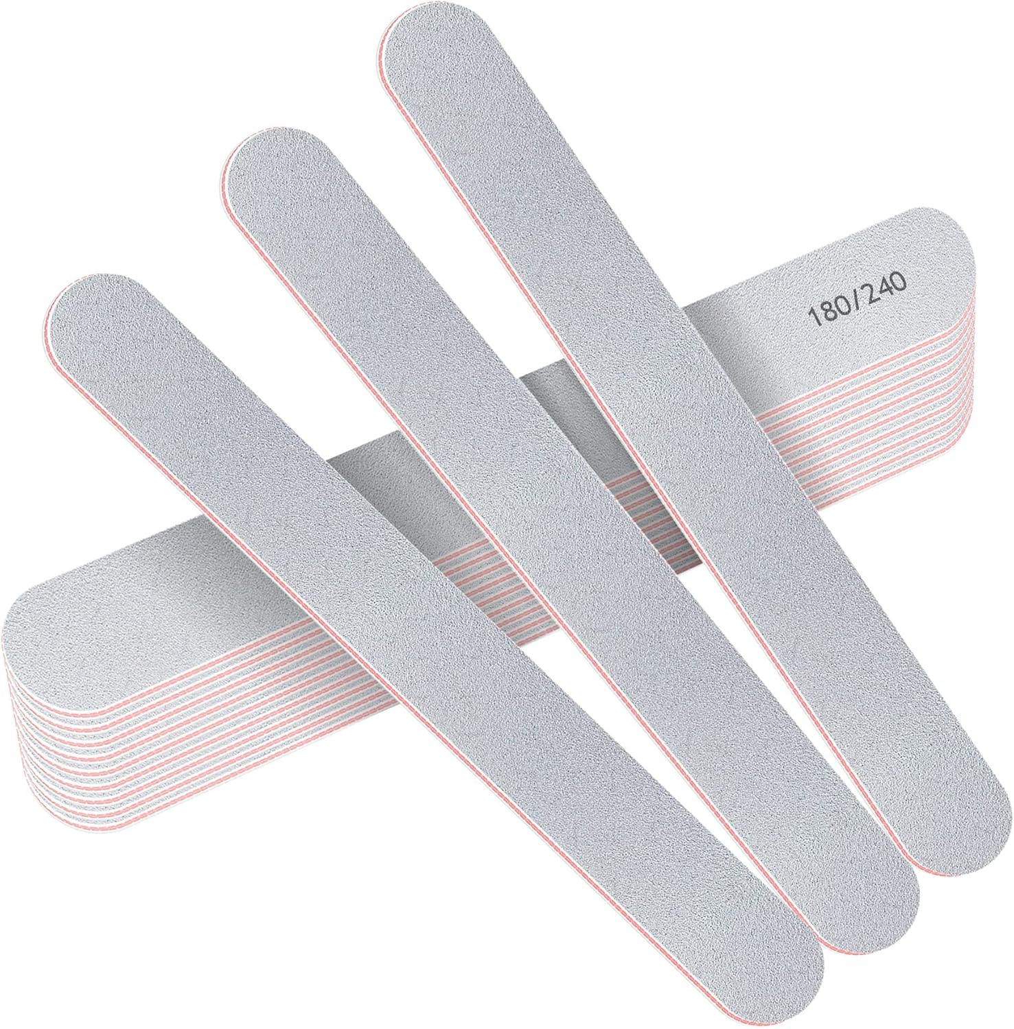 12 Pcs Professional Nail Files Double Sided Emery Boards 180/240 Grit, Fingernai