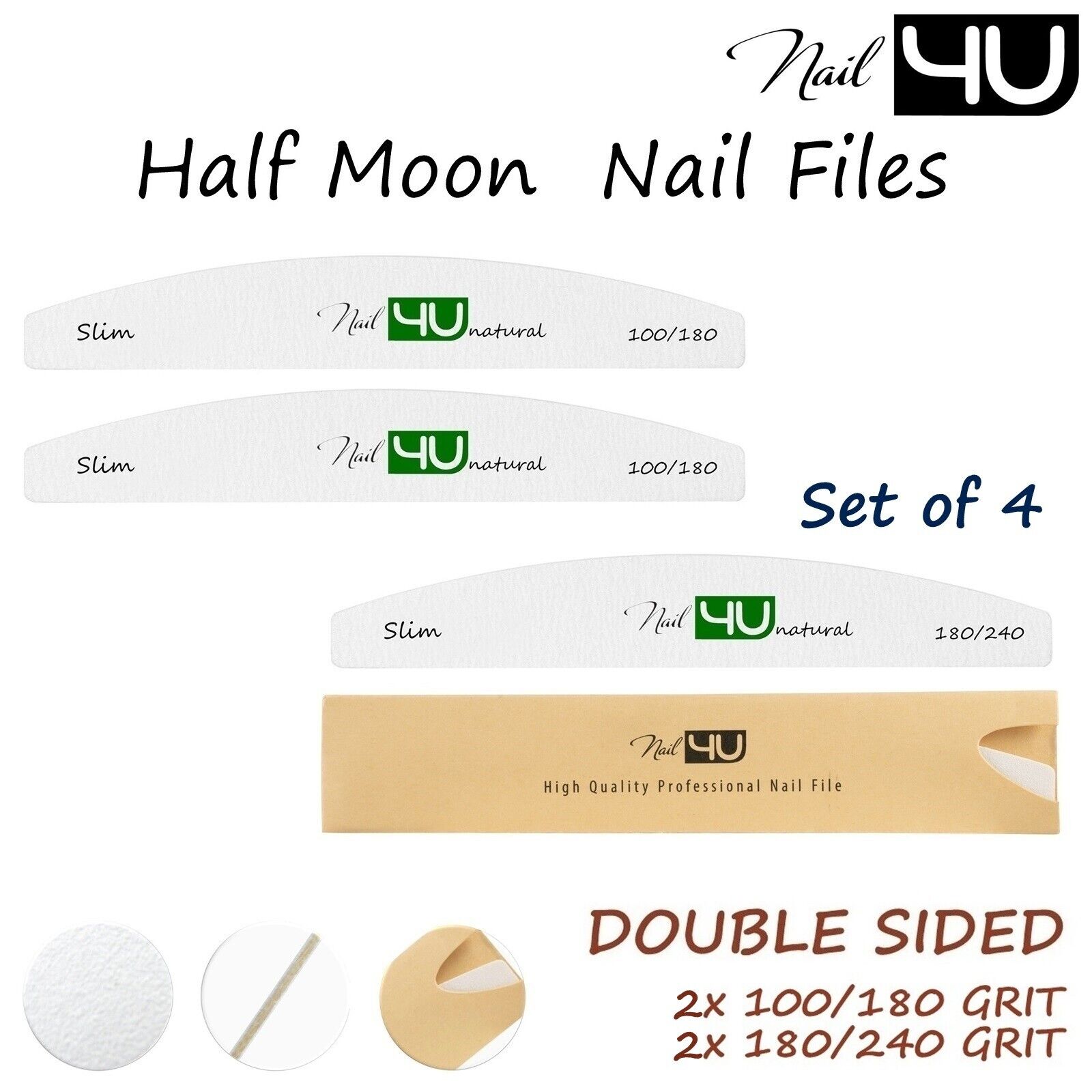 Professional Nail Files Half Moon Set of 4 Thin Nail File Curved Emery Boards