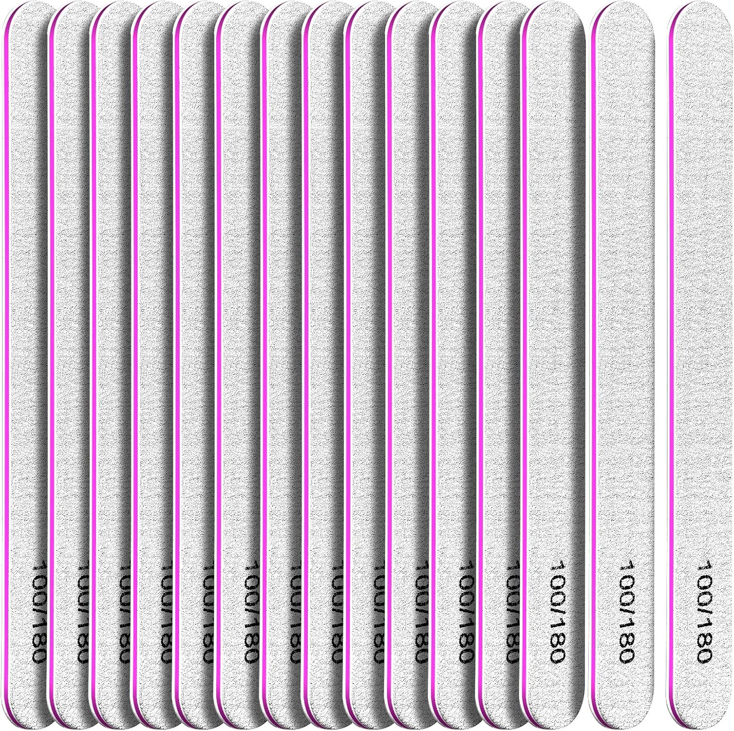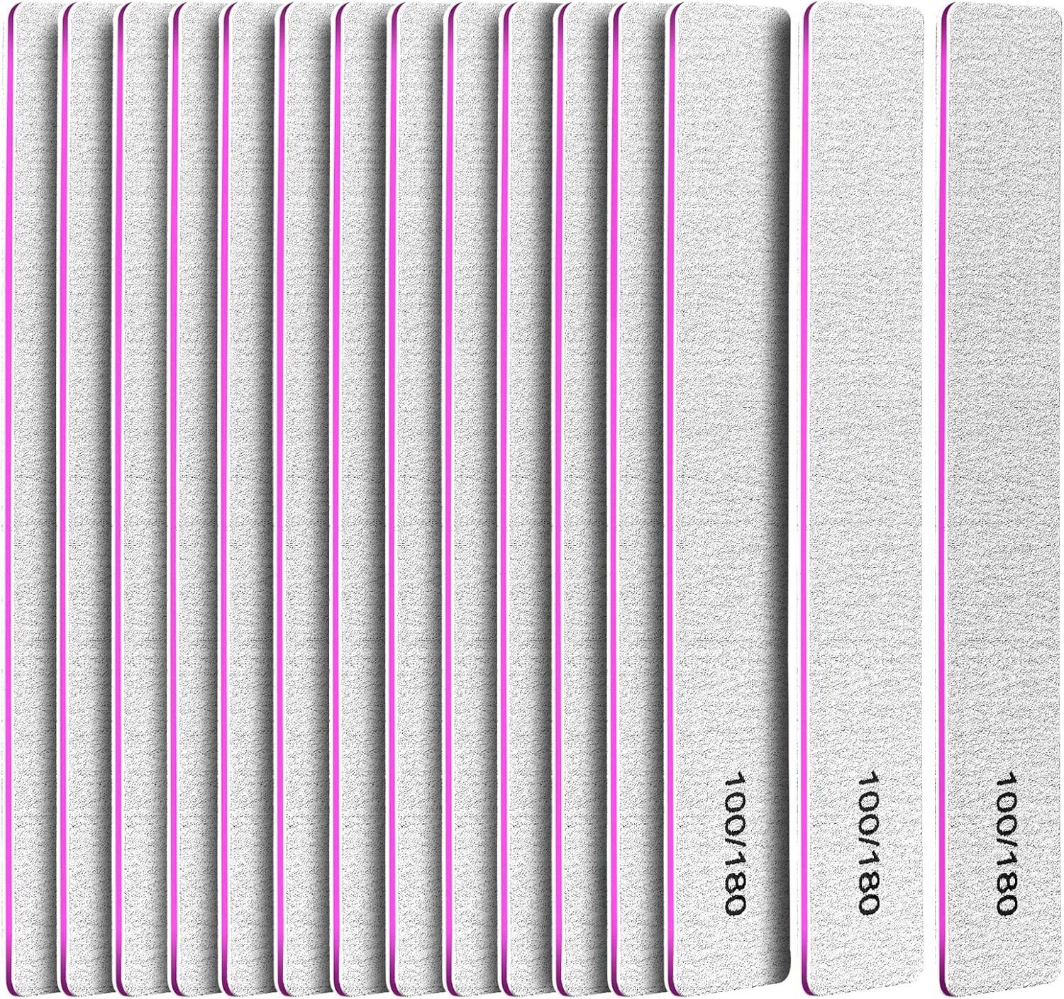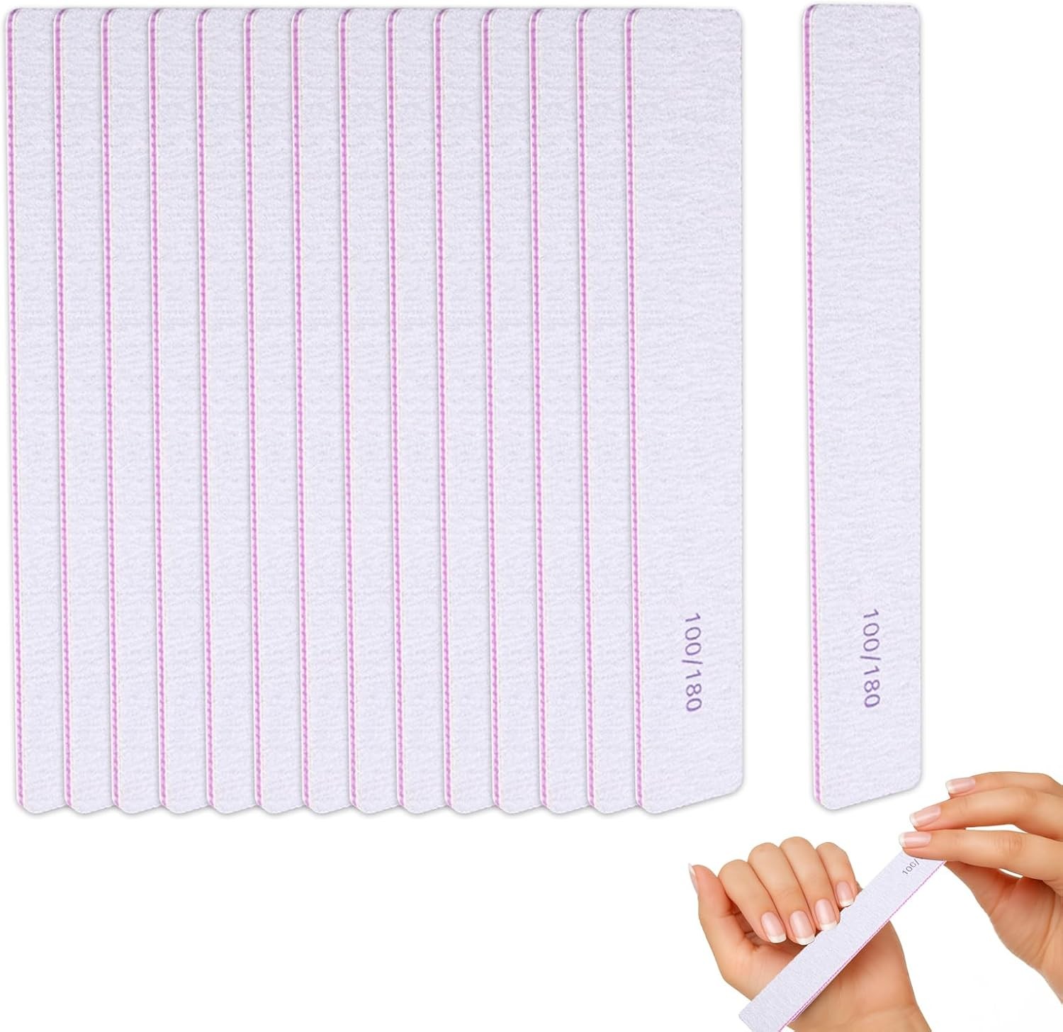 15 PCS Professional Nail Files 100/180 Grit, Double Sided Emery Boards Washable