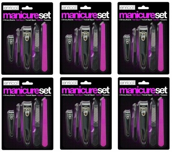 6 x Manicure Set Emery Boards Nail Clipper Nail File Tweezers Toenail Clippers