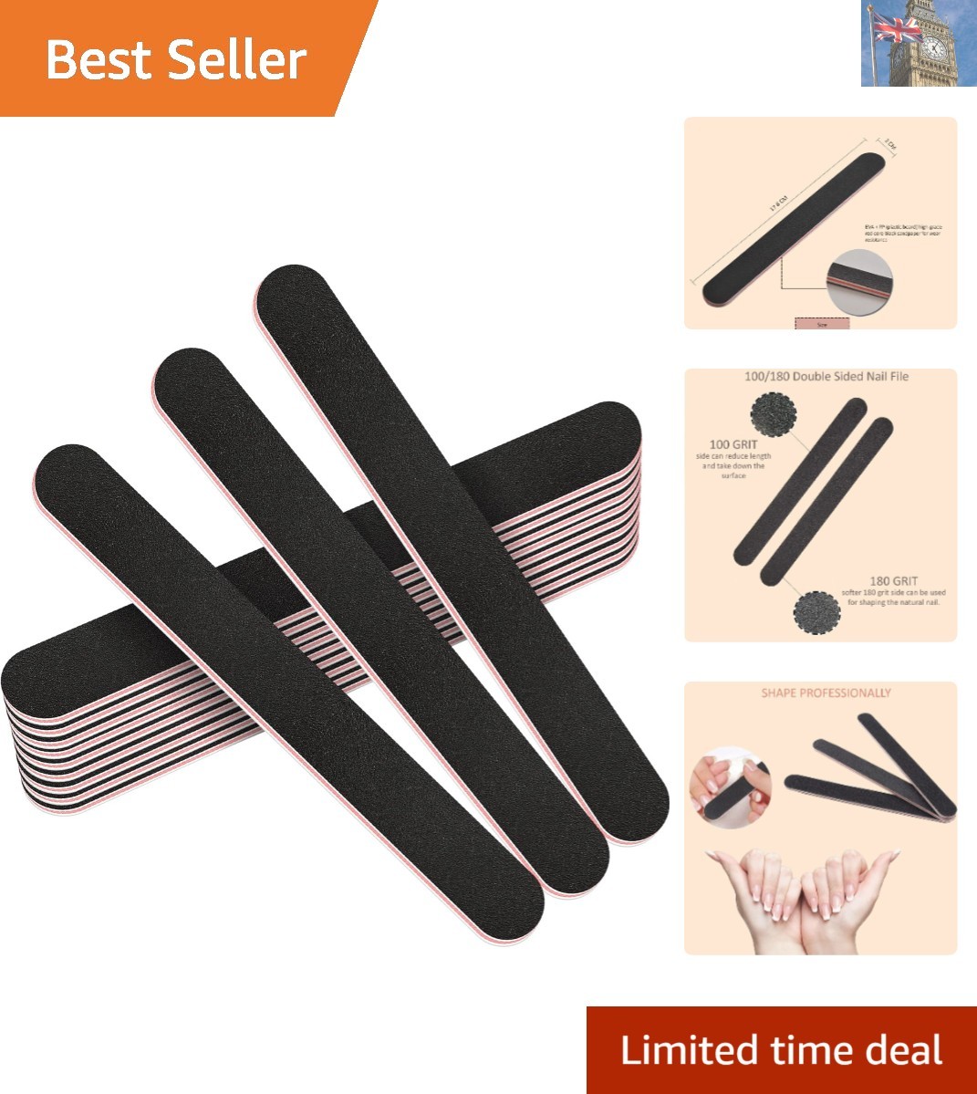 Nail File Emery Boards Professional Set, Assorted - 36 board Pack as picture uk