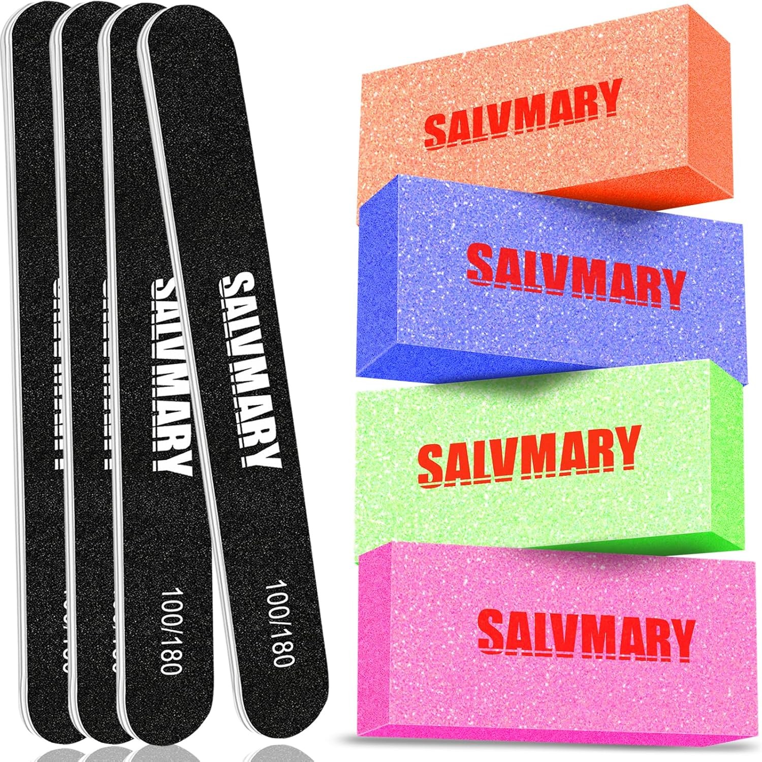 Nail File and Buffer Set - 4 Pcs Emery Boards and 4 Pcs Sanding Blocks with 100