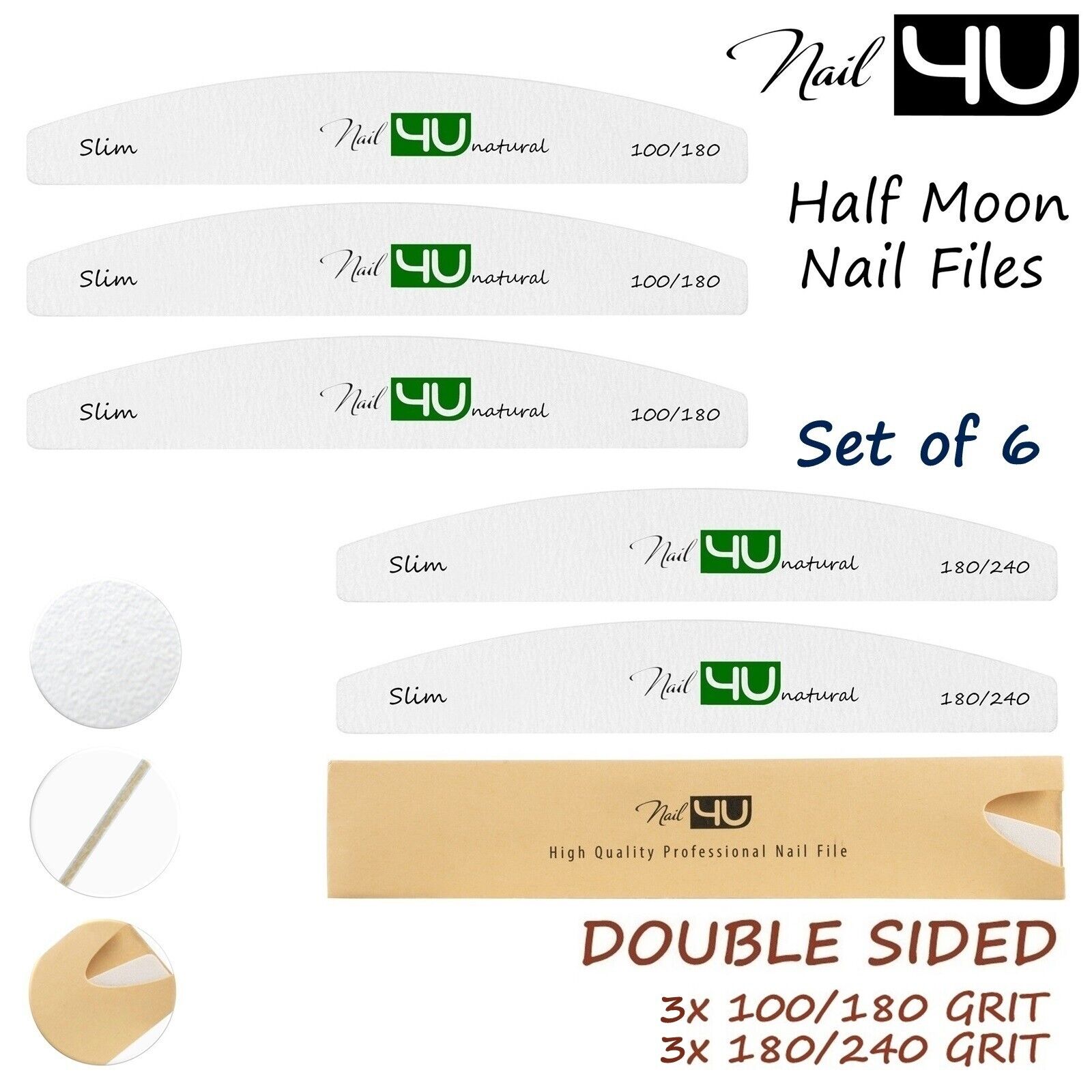 Professional Nail Files Half Moon Set of 6 Thin Nail File Curved Emery Boards