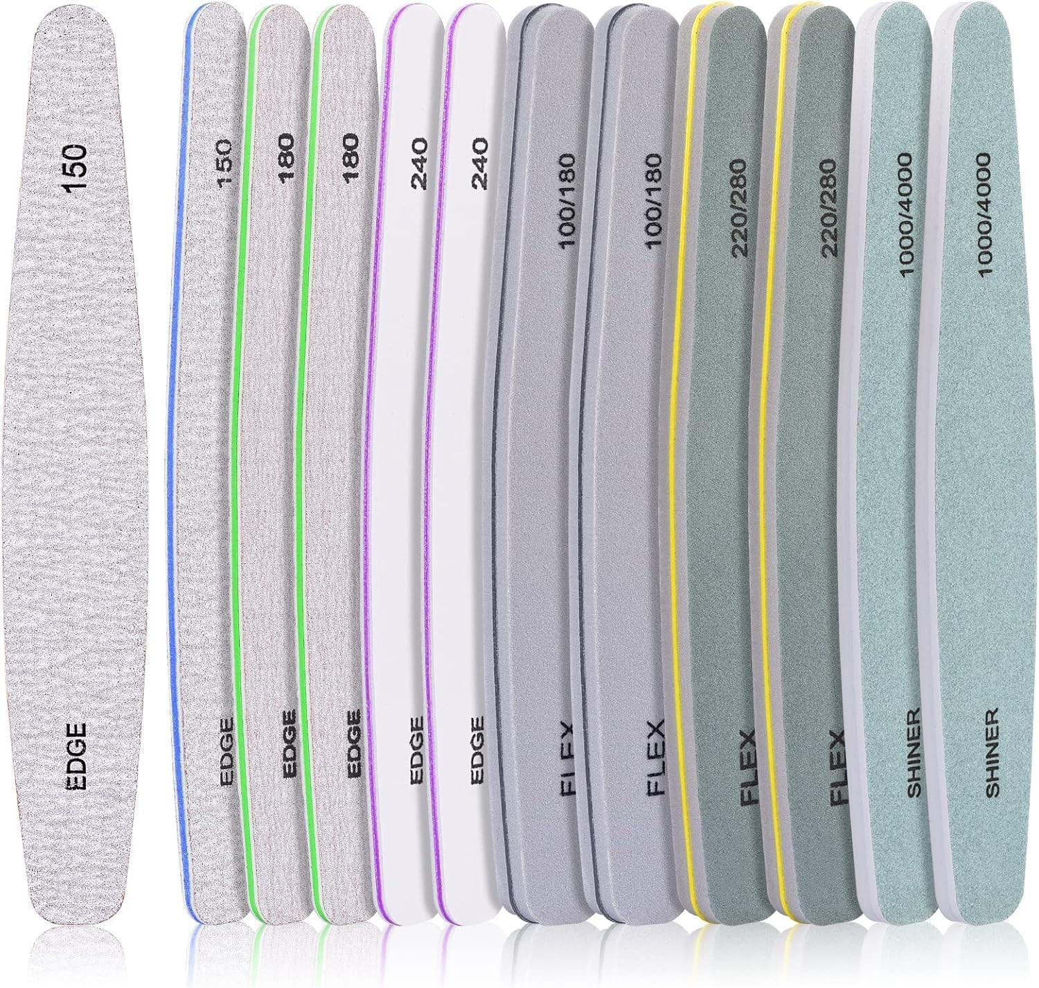 LOPHE 12PCS Professional Nail Files, Double Sided Mixing Grit Emery Boards for