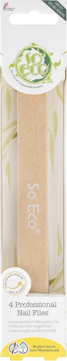 So Eco Professional Nail Files - 4 Pack -Gentle Emery Boards for Nail Shaping &