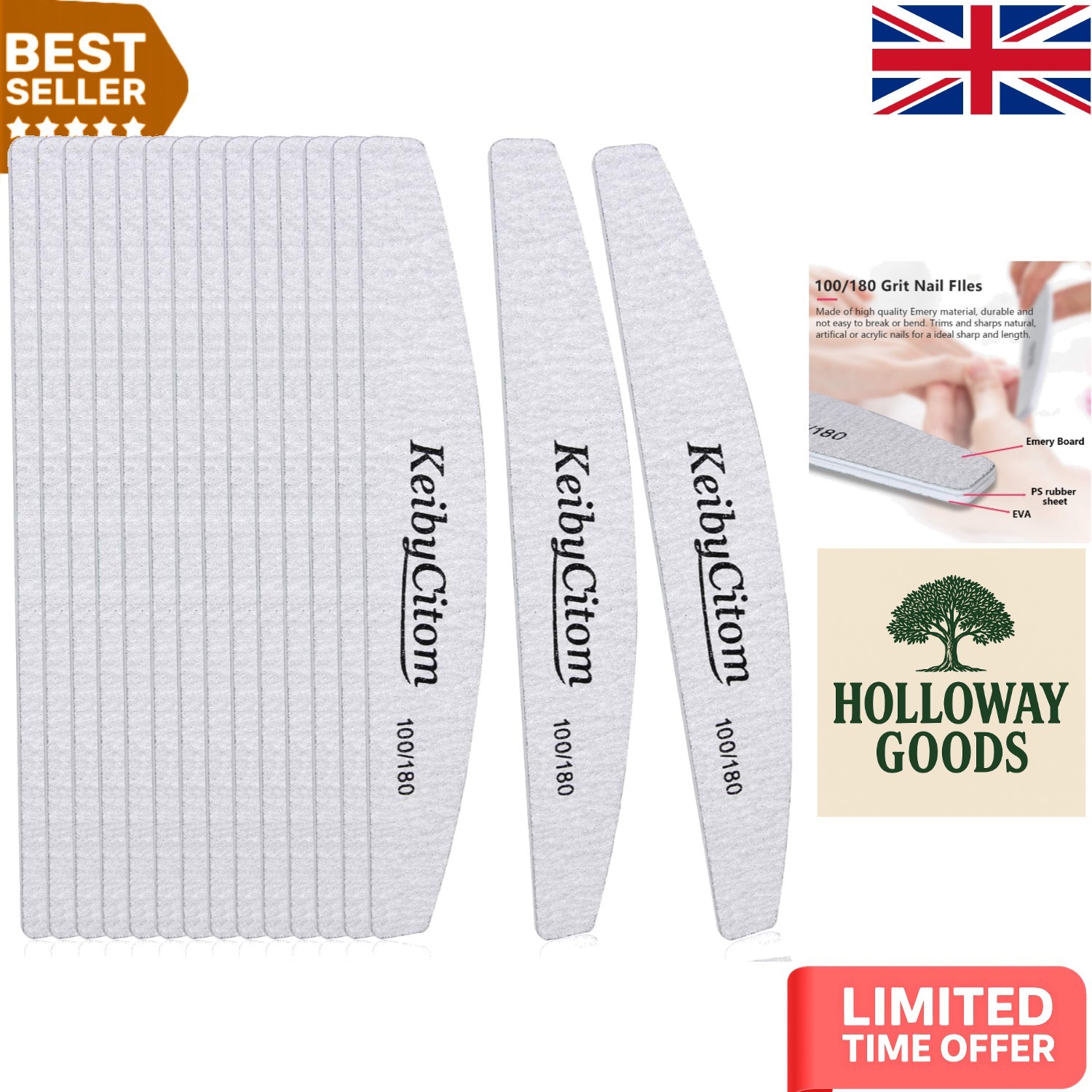 12 Pcs Professional Nail Files Emery Boards 100/180 Grit Double Sided Acrylic