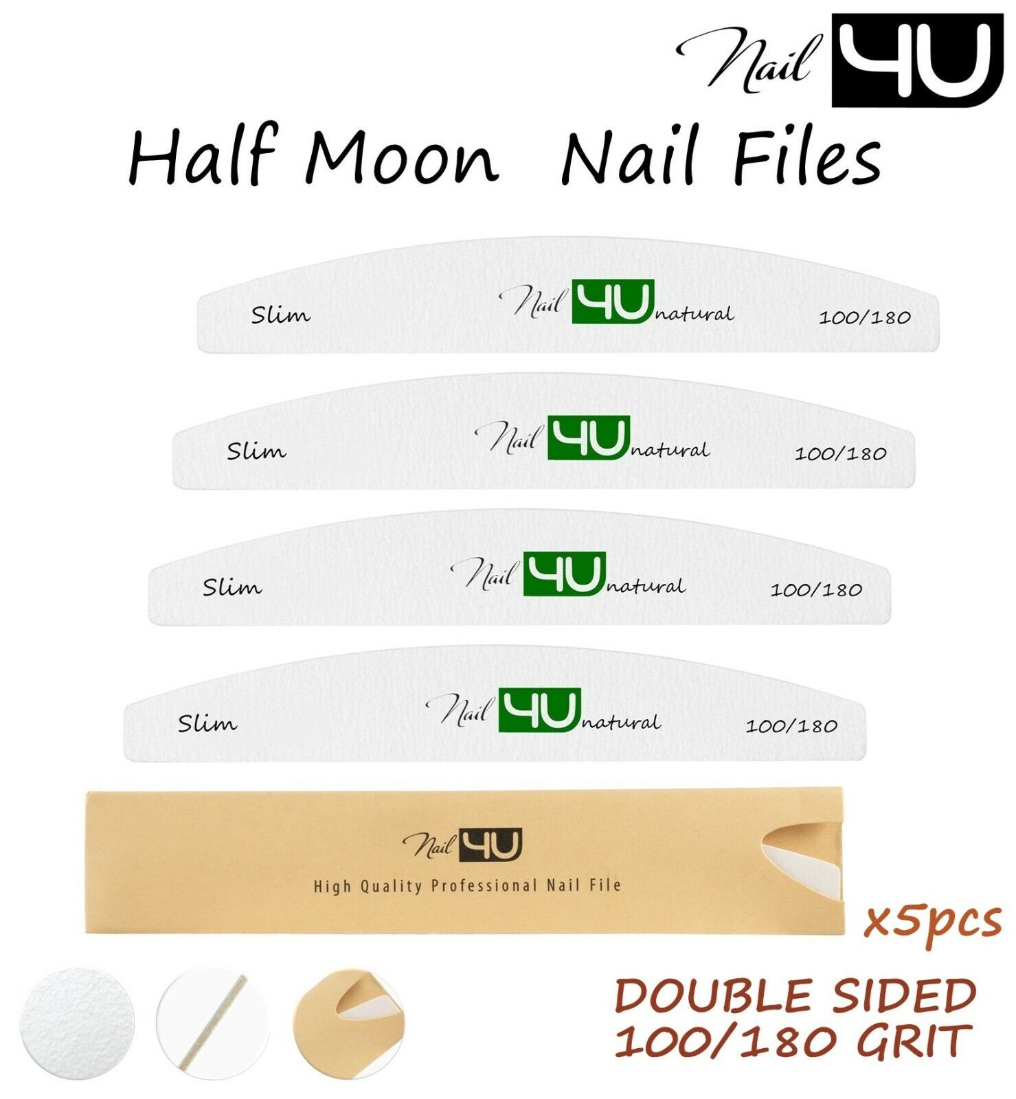 100/180 Grit Nail files Professional Quality Half Moon x 5 pcs Slim Emery Boards
