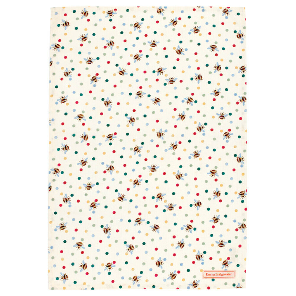 Emma Bridgewater - 100% Cotton - Tea Towel 48 x 70cms - Polka Dots & Bumblebees