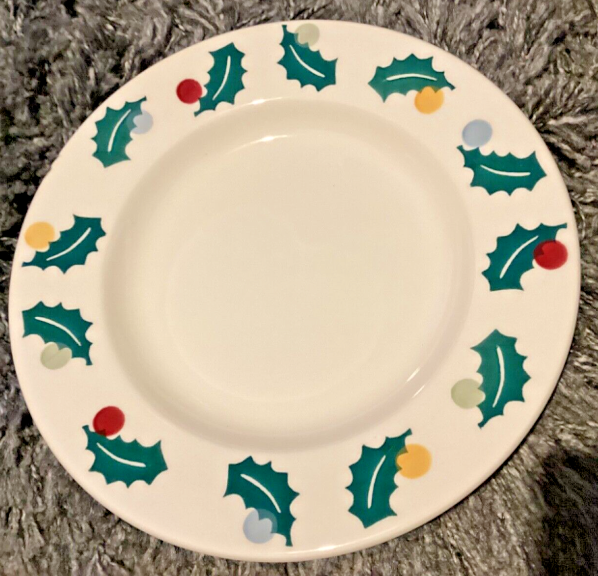Brand New Emma Bridgewater Earthenware Plate - Polka Holly - 10 1/2 in