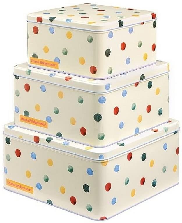 Emma Bridgewater Cake Tins Polka Dots Set of 3 Square Food Storage Tins