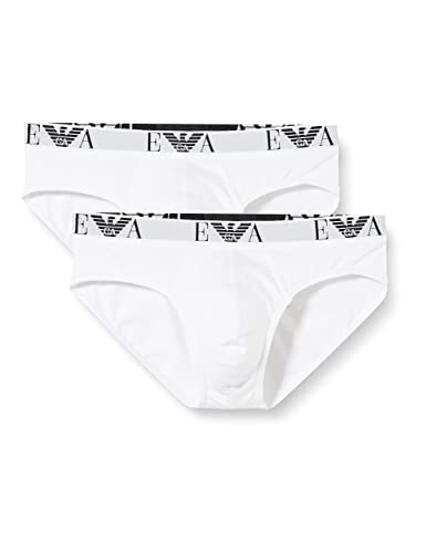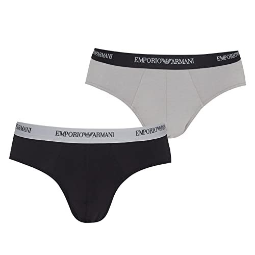 Emporio Armani Mens Essential Core Logoband 2-pack Brief Full Slip, Black/Grey, S UK