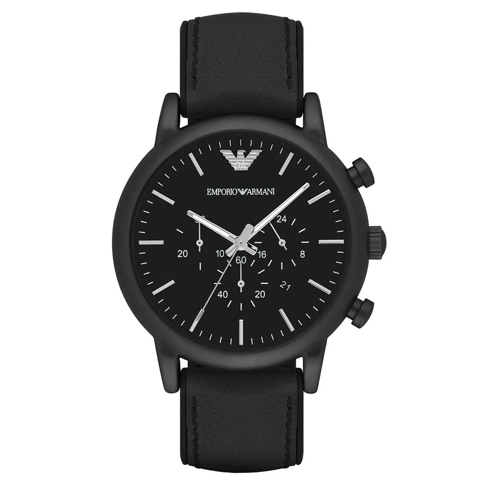 Emporio Armani Mens Classic Chronograph Watch on Black Leather Strap AR2432