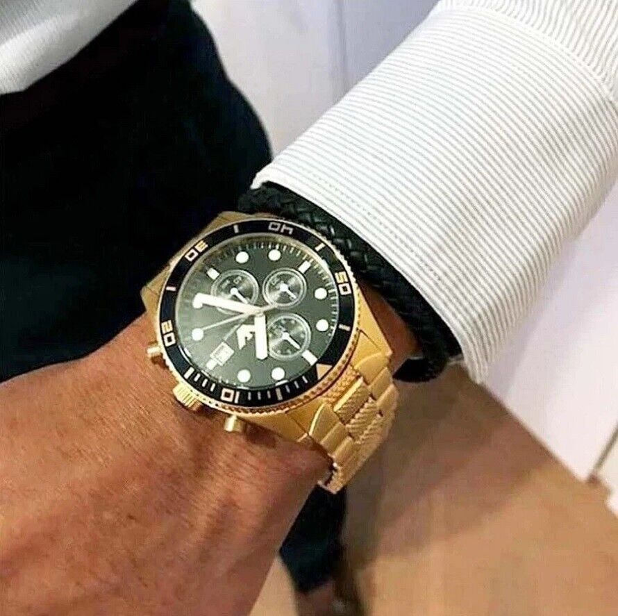 EMPORIO ARMANI MENS WATCH AR5857 BLACK DIAL & STAINLESS STEEL GOLD STRAP GENUINE
