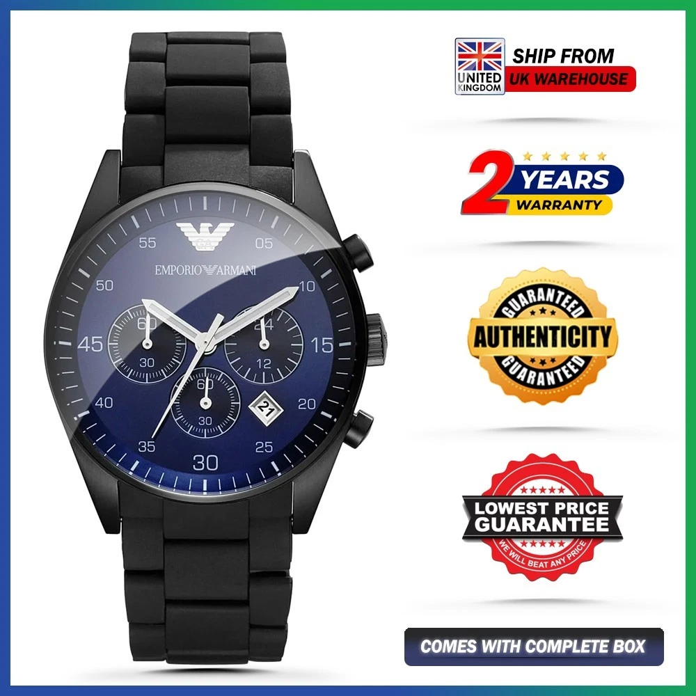 New Genuine Emporio Armani AR1970 Chronograph Fashion Black Strap Mens Watch