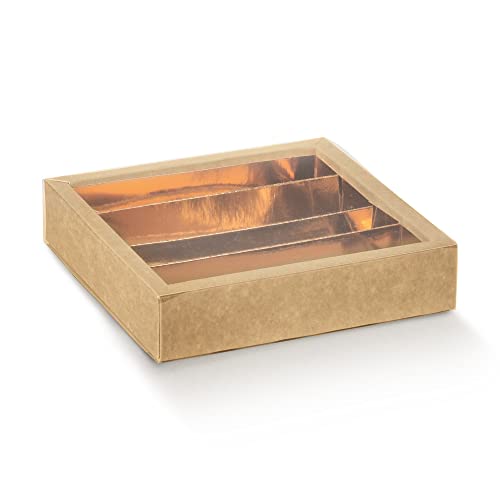 Italian Options Natural Chocolate Boxes with Inserts, Empty Kraft Gift Boxes for Truffles with Clear Sleeve, Food-Safe Treat Box for Wedding Favours, Gifts, 10-Pack, 145 x 145 x 35 mm, Nature (Brown)