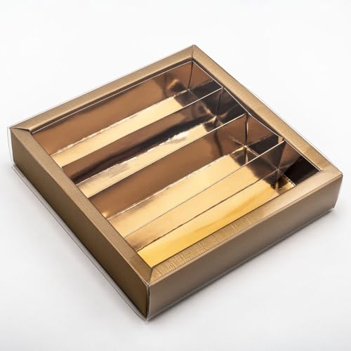 Italian Options Gold Chocolate Boxes with Inserts, Empty Gift Boxes for Truffles with Clear Sleeve, Food-Safe Treat Box for Wedding Favours, Gifts, 10-Pack, 145 x 145 x 35 mm, Fibra Gold