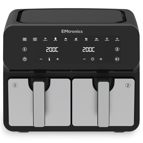 Emtronics Dual Air Fryer Extra Large Family Size Double XL 9 Litre with 8 Adjust