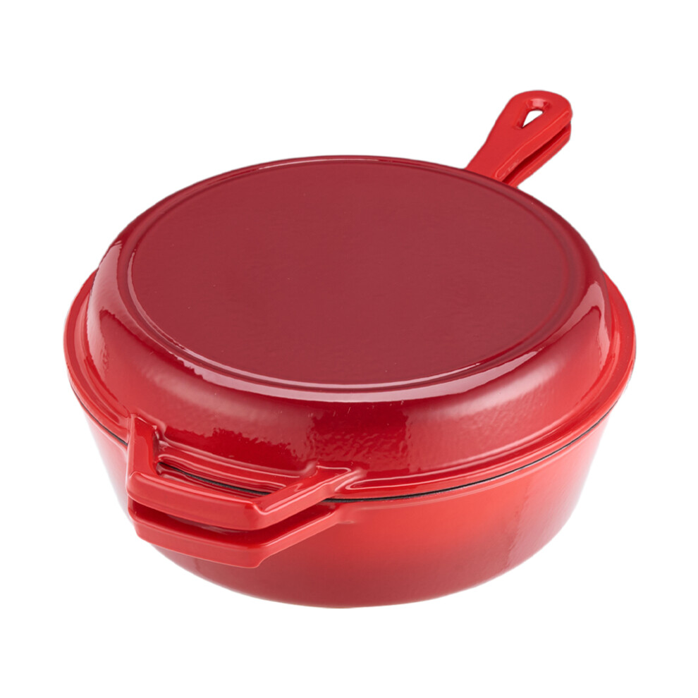 Garden Sanctuary 2 in 1 Porcelain Enamel Cast Iron Pot Frying Pan, Red