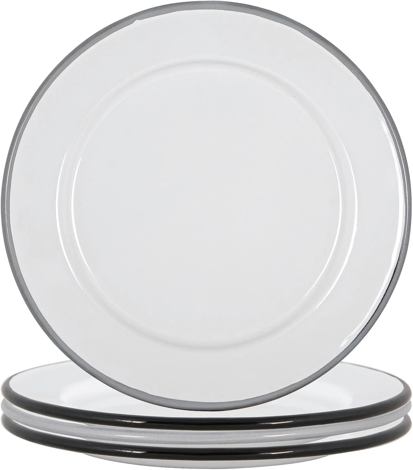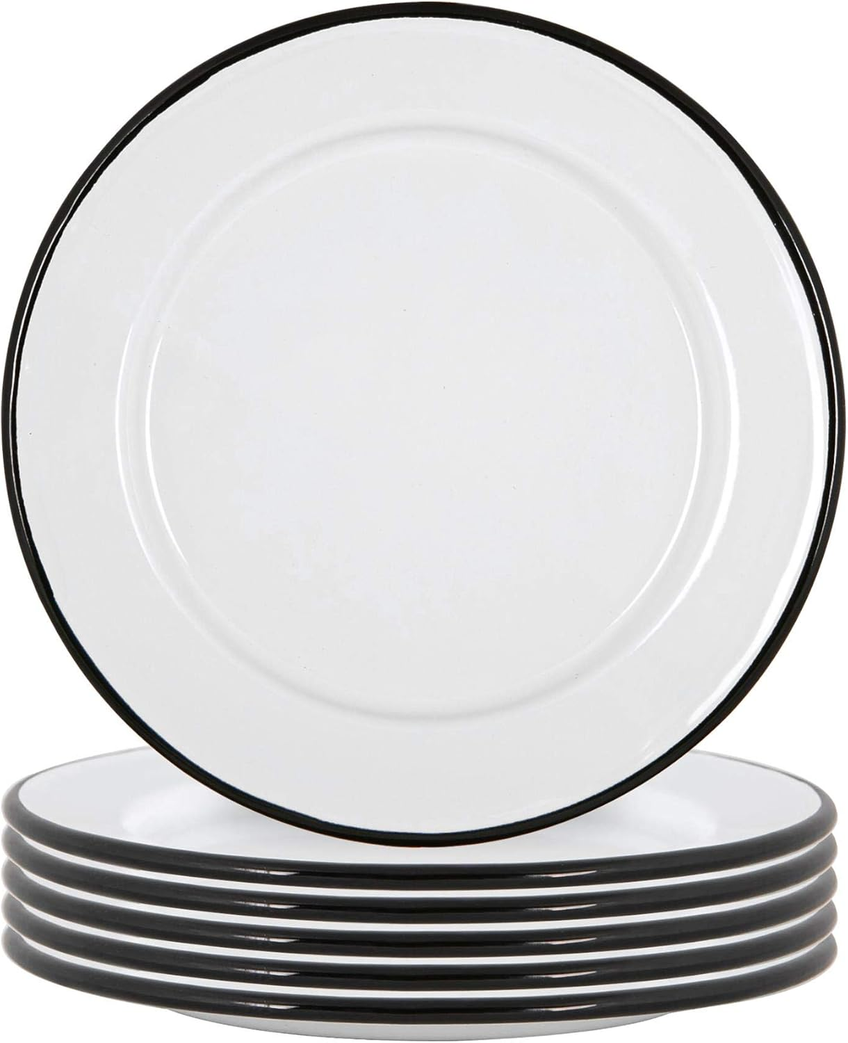 25.5cm White Enamel Dinner Plates - Pack of Six - Black
