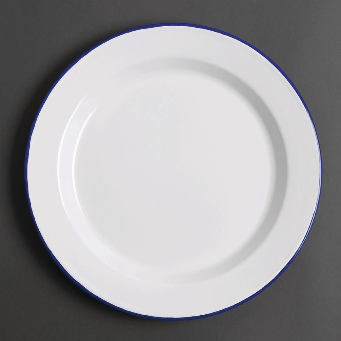 25.5cm White Enamel Dinner Plates - Pack of Six - Blue