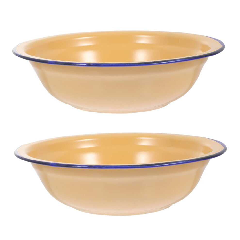 Enamel Soup Bowl Set of 2, Yellow Thickened Enamel Soup Plates for Daily Use, 18X18X5CM Home Decoration