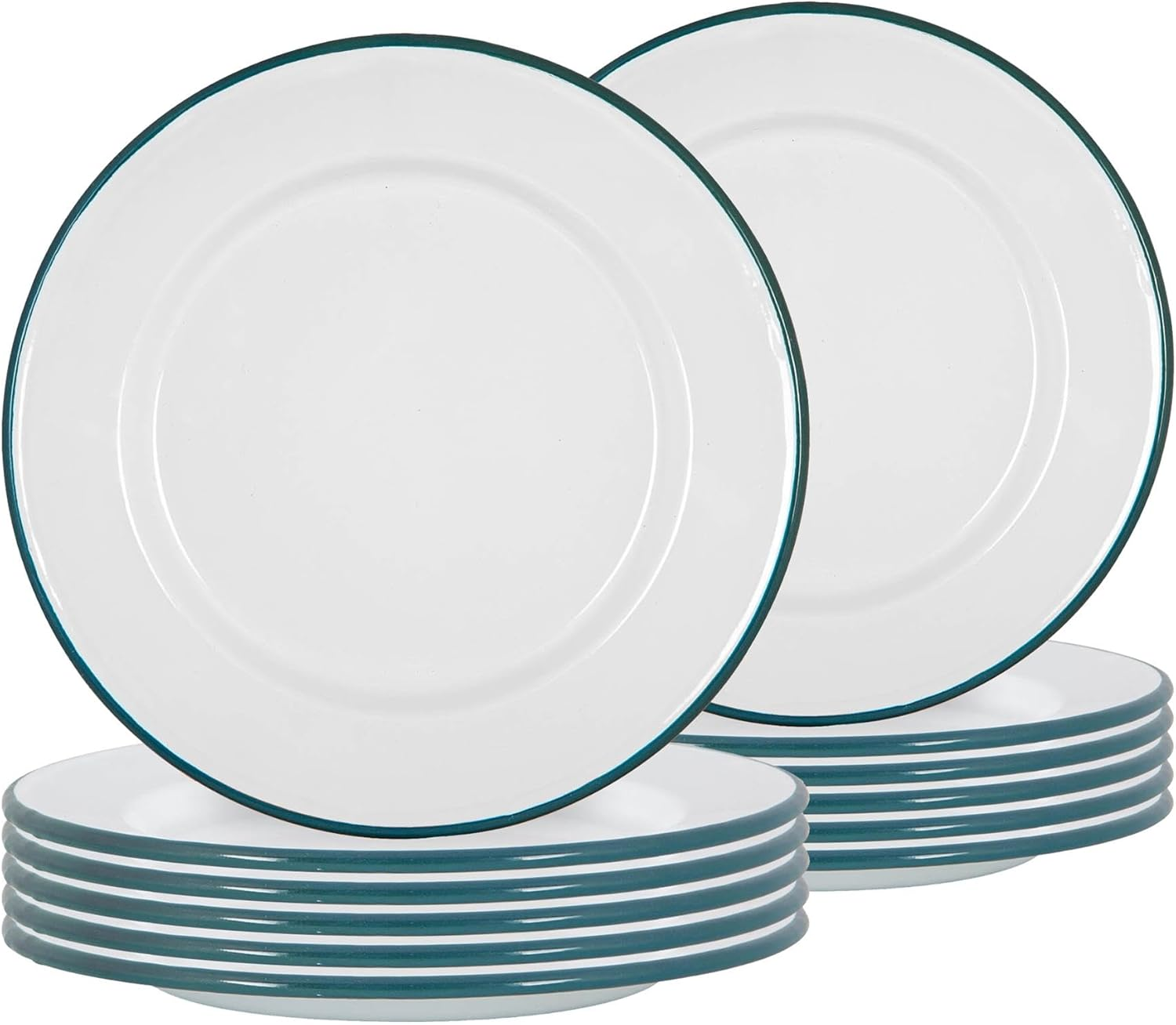 Enamel Dinner Plates - 25.5Cm - Pack of 12 - Green, Rustic, Durable, Chip Resist