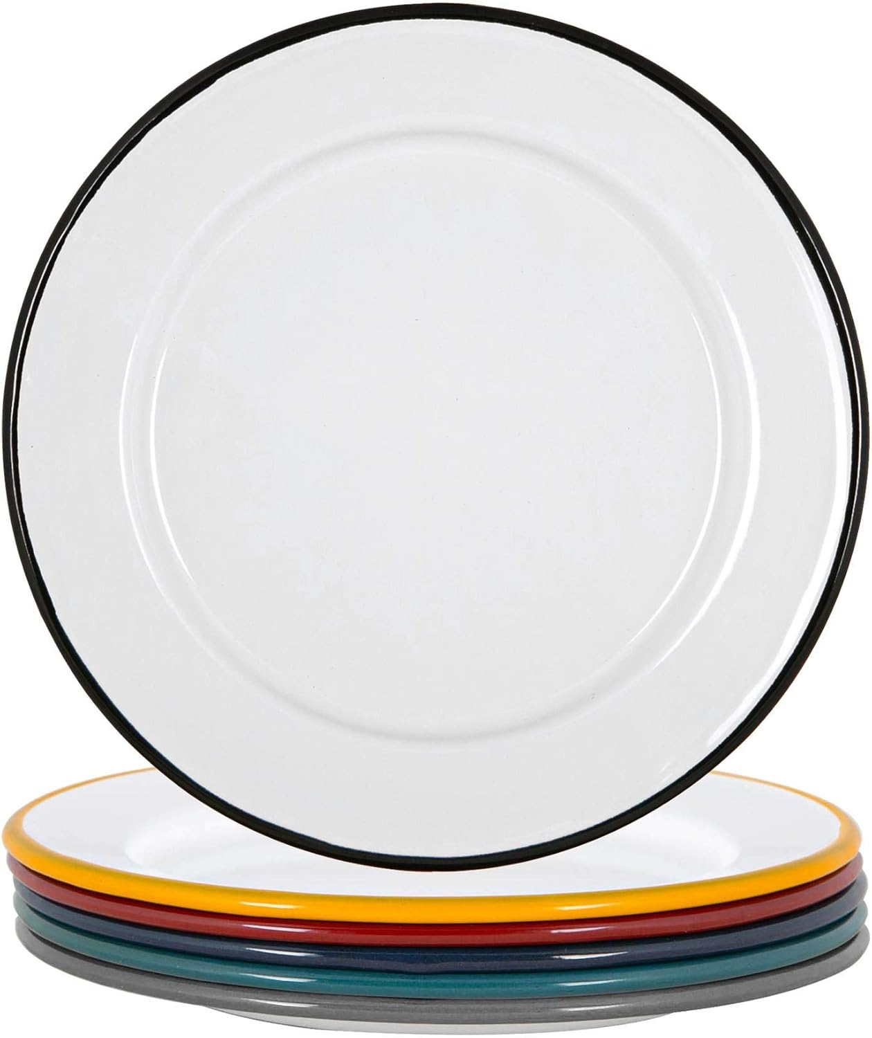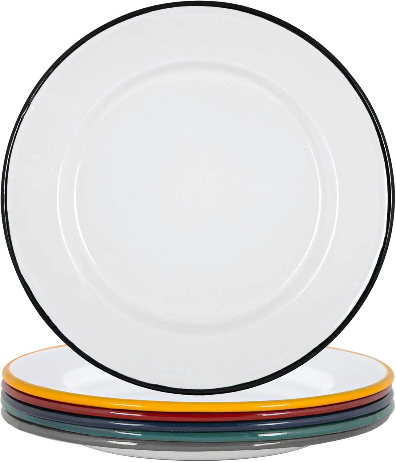 Enamel Dinner Plates - 25.5Cm - Pack of 6 - Multicoloured Dining Plates Lightwei