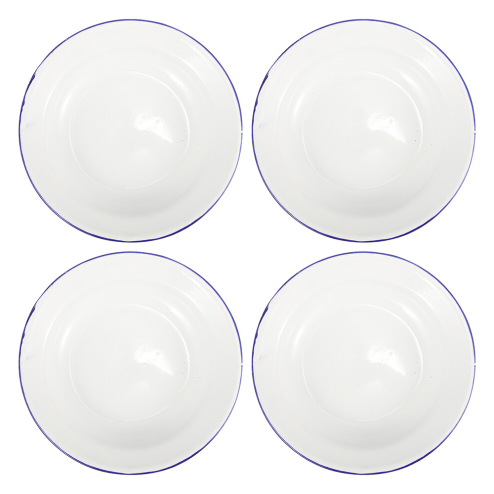 Set of 4 x 26cm White Enamel Camping Picnic Plates