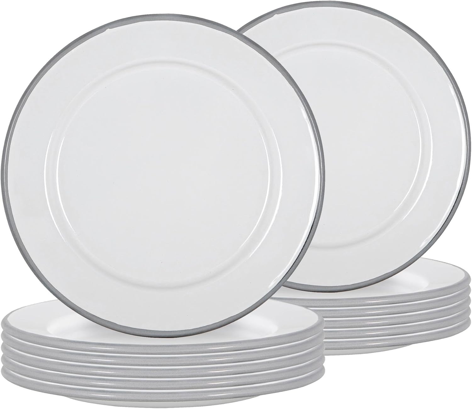 25.5cm White Enamel Dinner Plates - Pack of Six - Grey